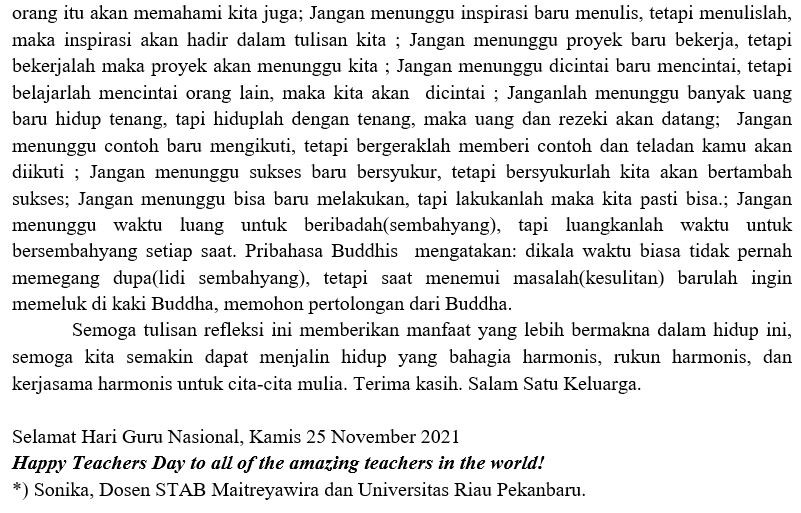 Penghargaan Atas Pengabdian Sebagai Guru Agama Buddha10 August 2019 (6 years ago) Wakil Ketua I Sonika,S.E.,S.Ag.,M.Pd. Wakil Ketua III Rida Jelita, S.H... |