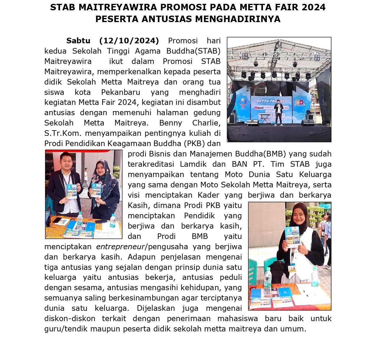 Kegiatan Metta Fair 2024 Stab Maitreyawira Ambil Bagian Promosi Kampus Di Sekolah Metta Maitreya Pekanbaru11 October 2024 (1 year ago)